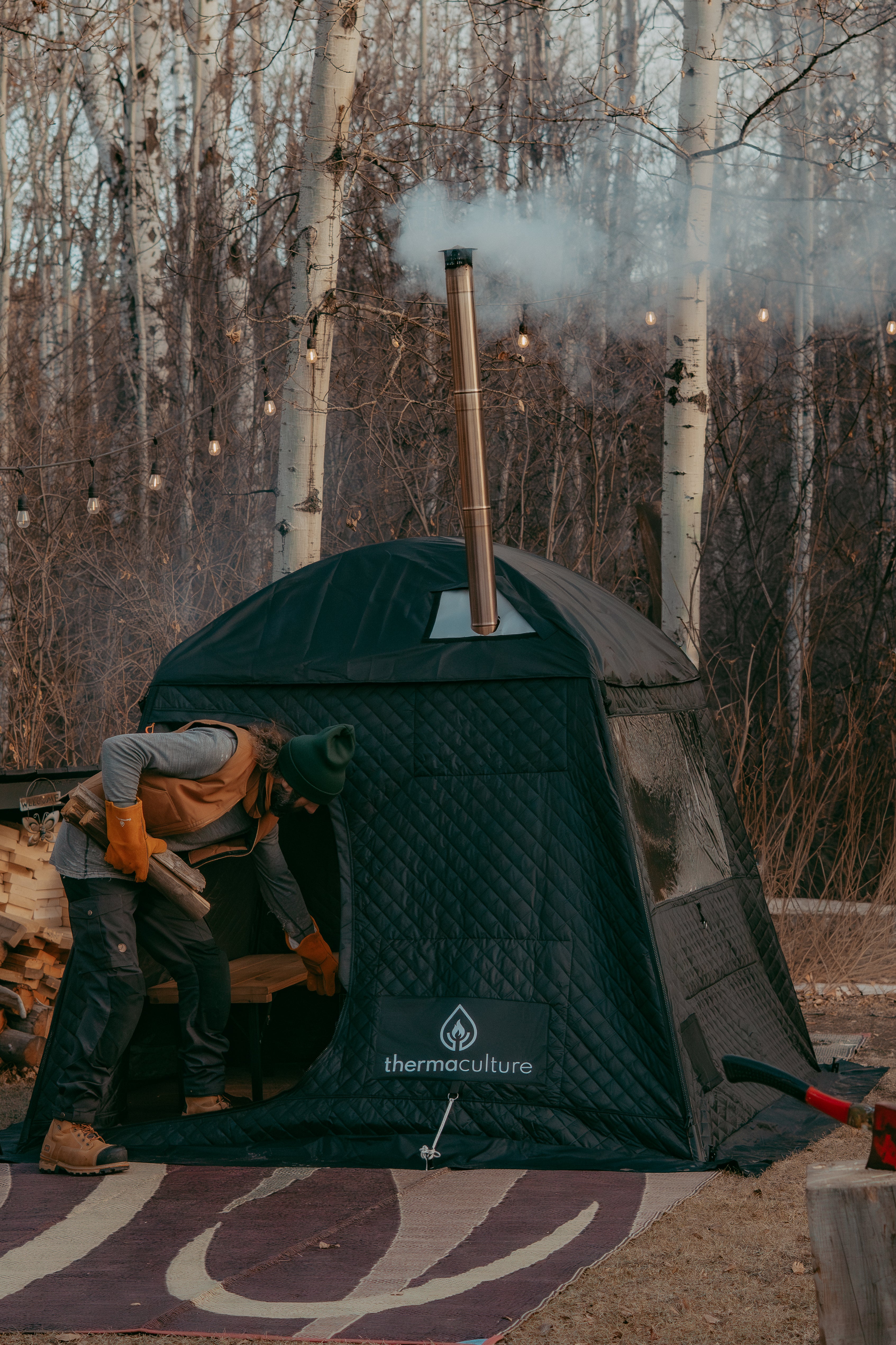 As one of the first companies to pioneer the portable sauna tent industry in the world — and the first in North America — Thermaculture has spent years designing, testing, and refining this system to perform in the harshest climates. Every stove and tent combination reflects that evolution — built not just to withstand the elements, but to bring the ritual of heat and restoration to the wild.