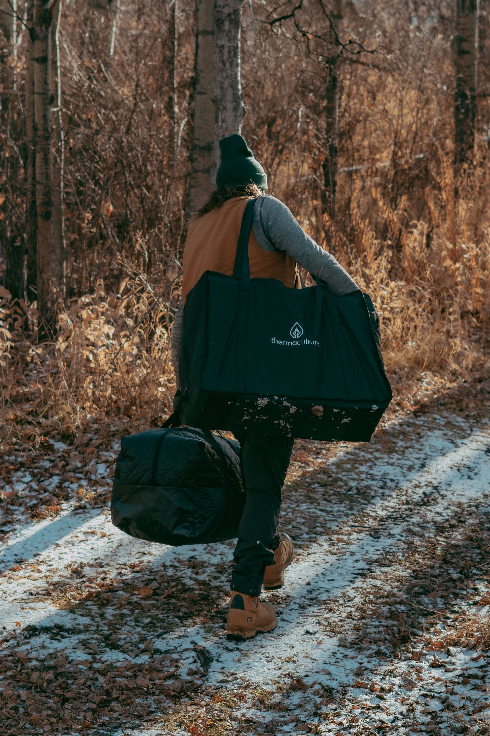 The Thermaculture Stove Bag is purpose-built to protect your wood-fired sauna stove and make transport feel effortless. Reinforced stitching, durable fabric, and sturdy handles create a secure, dependable way to move your stove whether you're heading into the backcountry, loading up for a winter session with friends, or storing your gear between seasons.